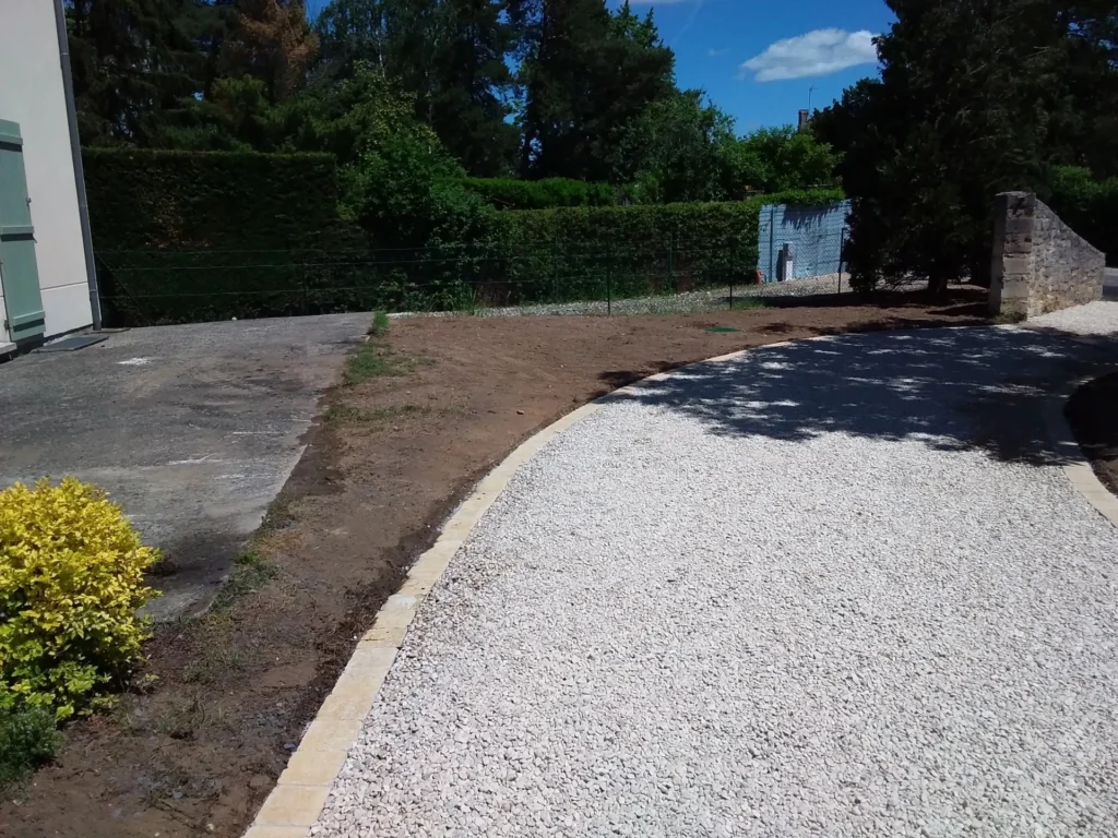 Terrassement terrain pour allée impeccable. Le rendu est parfaitement nivelé.