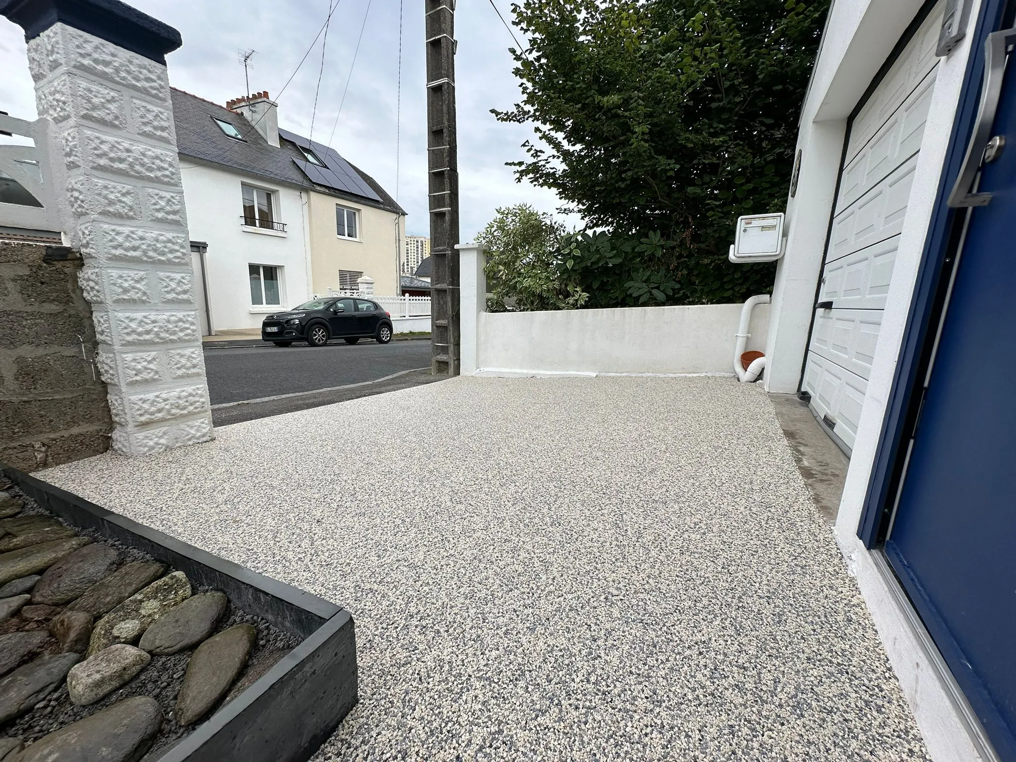 Terrassement avant goudronnage soigné. Aucun affaissement constaté.